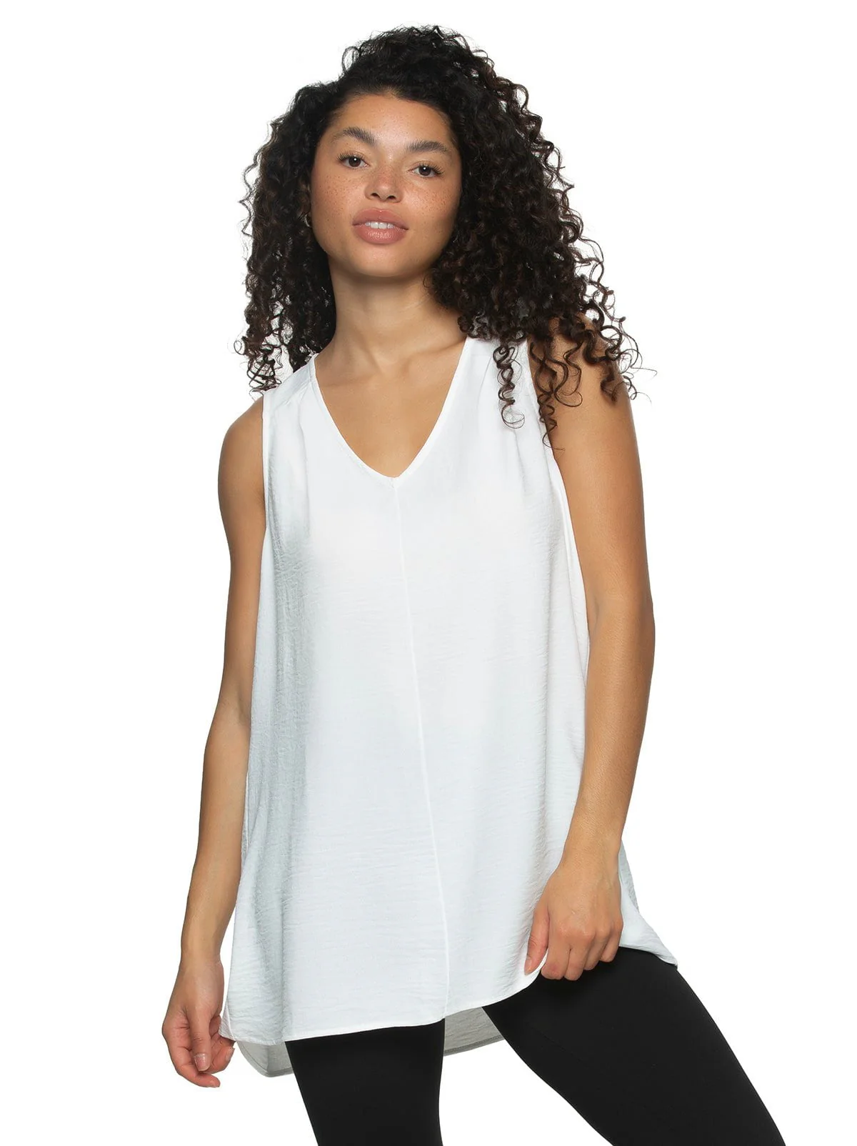 Elevate your style with our classic Cruise Tank. Sleeveless and boasting an A-line shape, this top combines comfort with a touch of elegance. The V-shaped neckline and pleated details add subtle sophistication. Crafted from a lightweight, travel-friendly crinkle woven material, this tank effortlessly fuses fashion and function for a versatile wardrobe essential