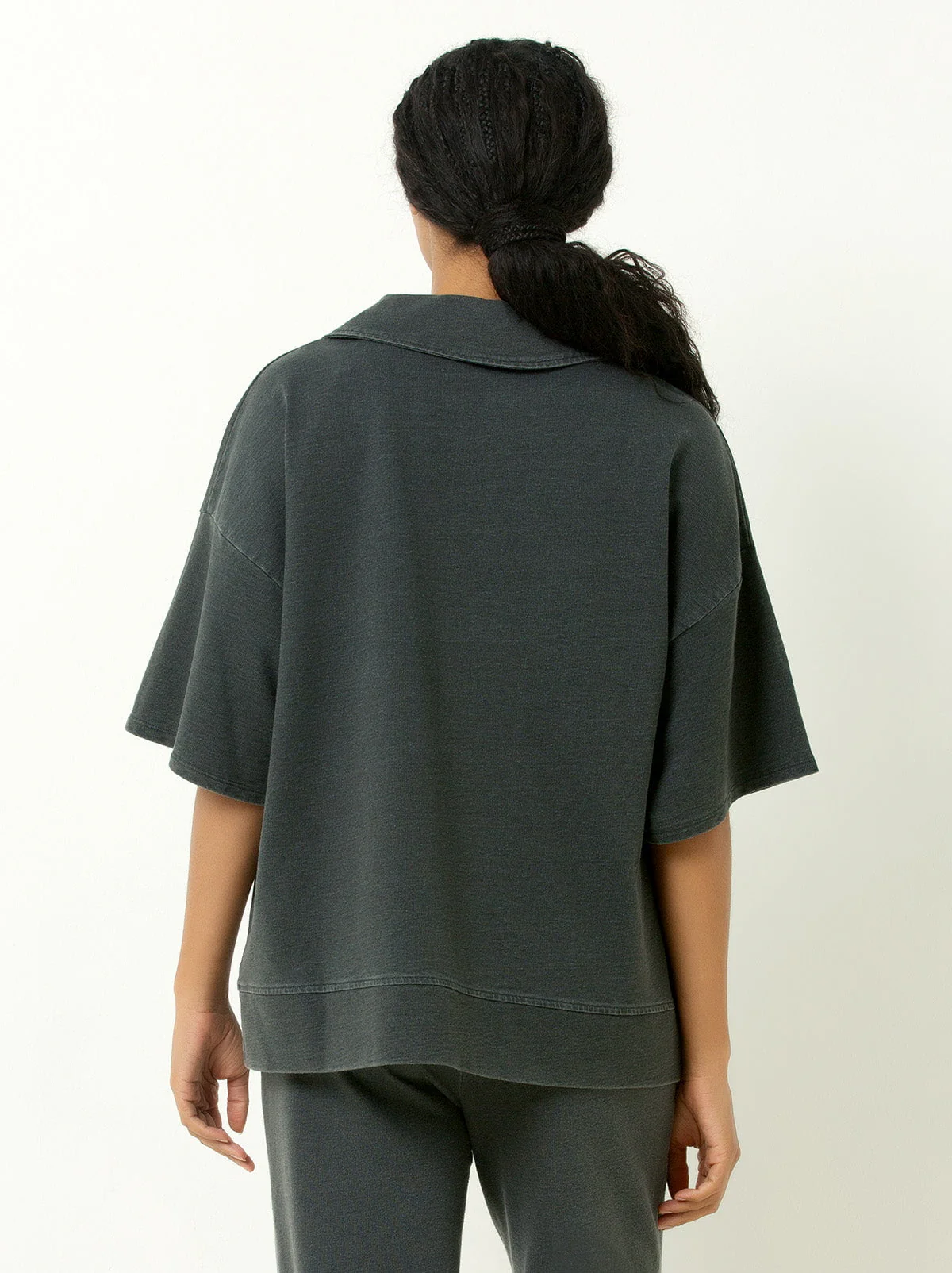 - Oversized fit with minimal seams and clean hem